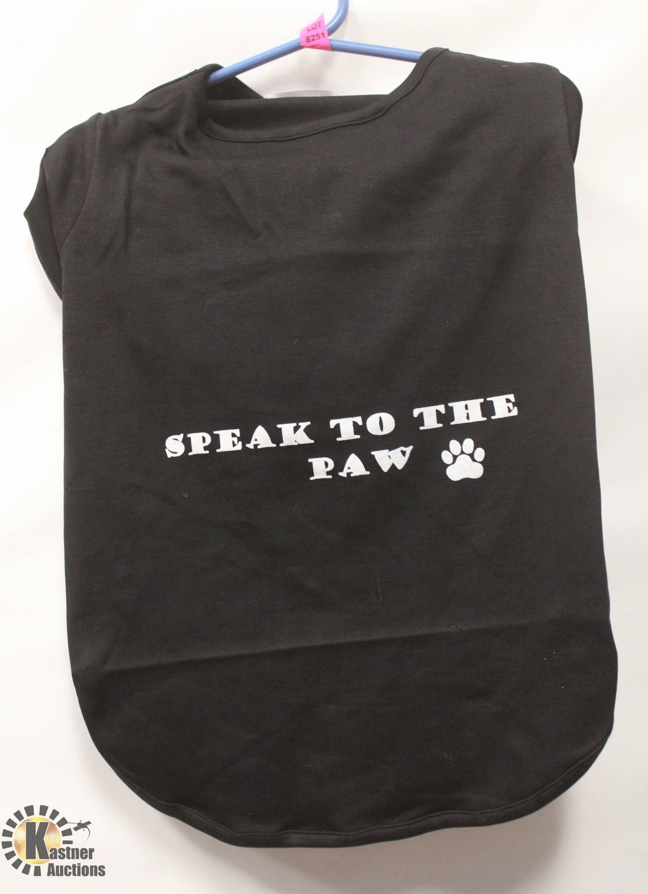 "SPEAK TO THE PAW" BLACK PET T-SHIRT SIZE XL.