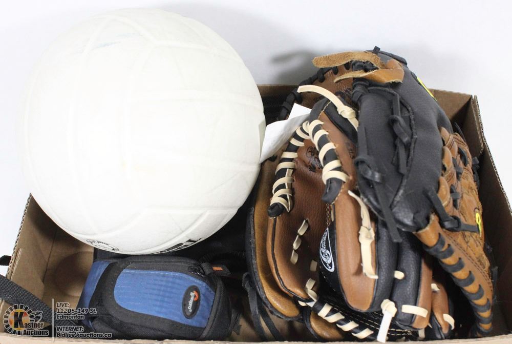 NEW BASEBALL GLOVES AND BALL. RAWLING. WILSON. VOLLEYBALL , DIGITAL CAMERA