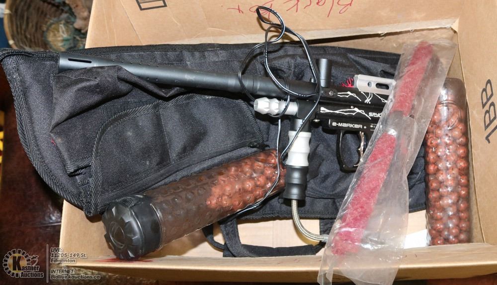 WITH CHARGER, HOPPER, CASE AND PAINTBALLS. SPORTS
