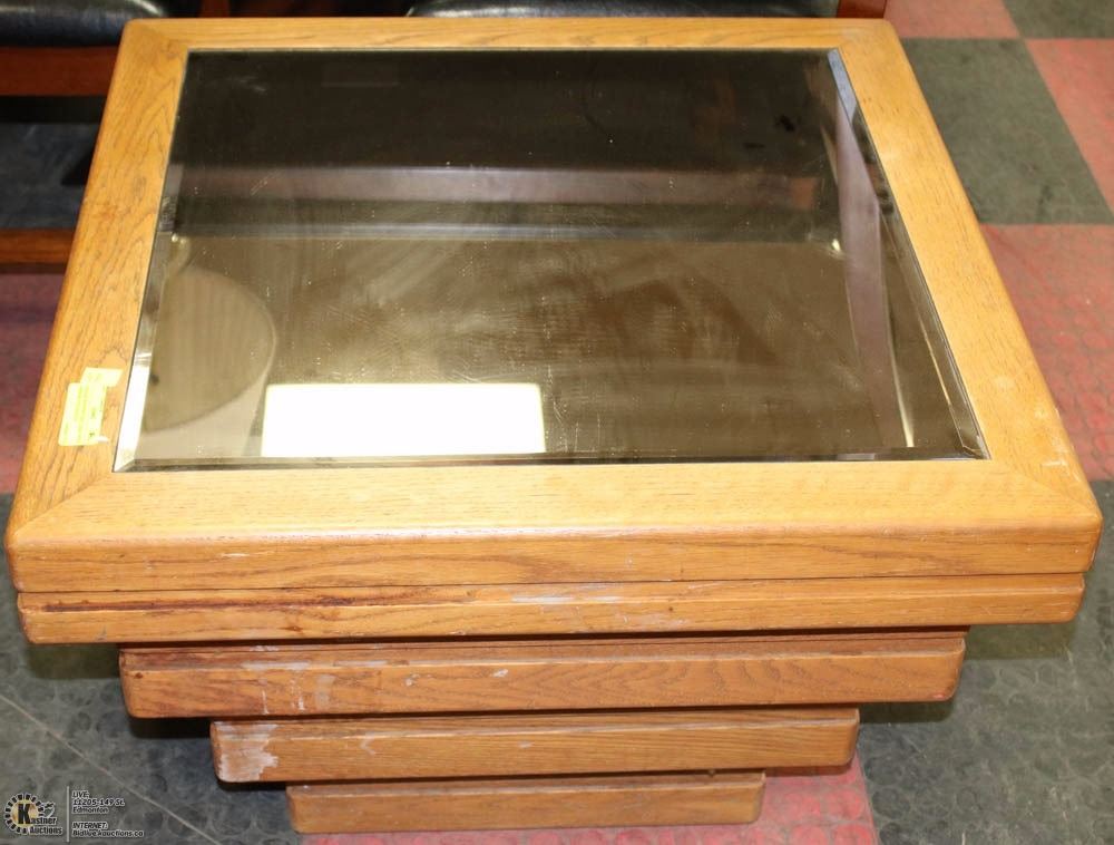 SQUARE WOODEN SIDE TABLE WITH MIRROR TOP 28X28X19
