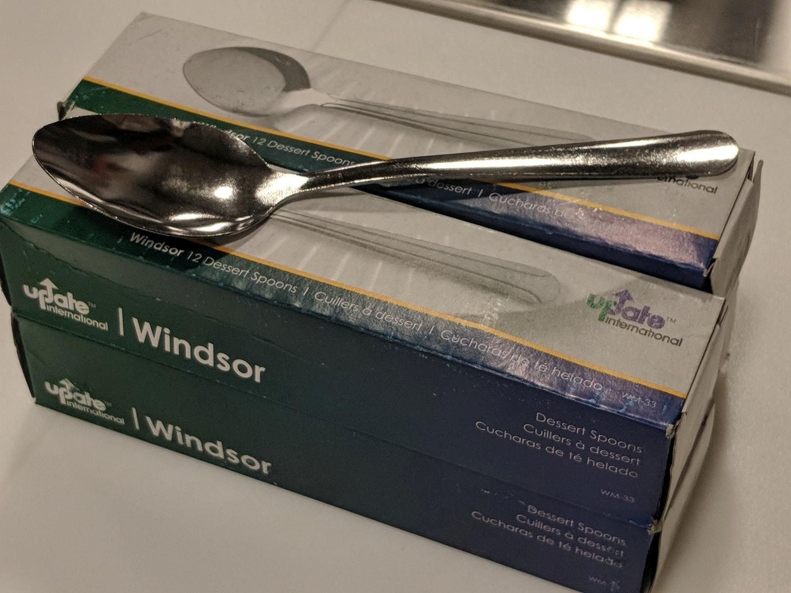 K672 NEW STAINLESS DESSERT SPOONS, WINDSOR SERIES - LOT OF 48