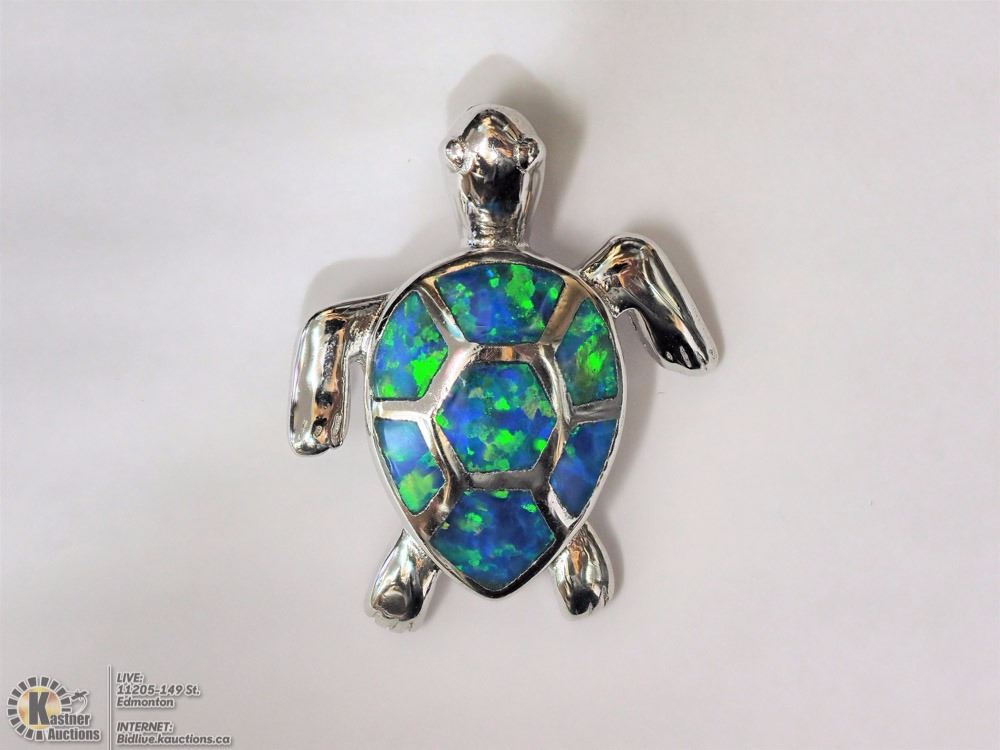 (#3- NN3):STERLING SILVER CREATED OPAL TURTLE SHAPED PENDANT