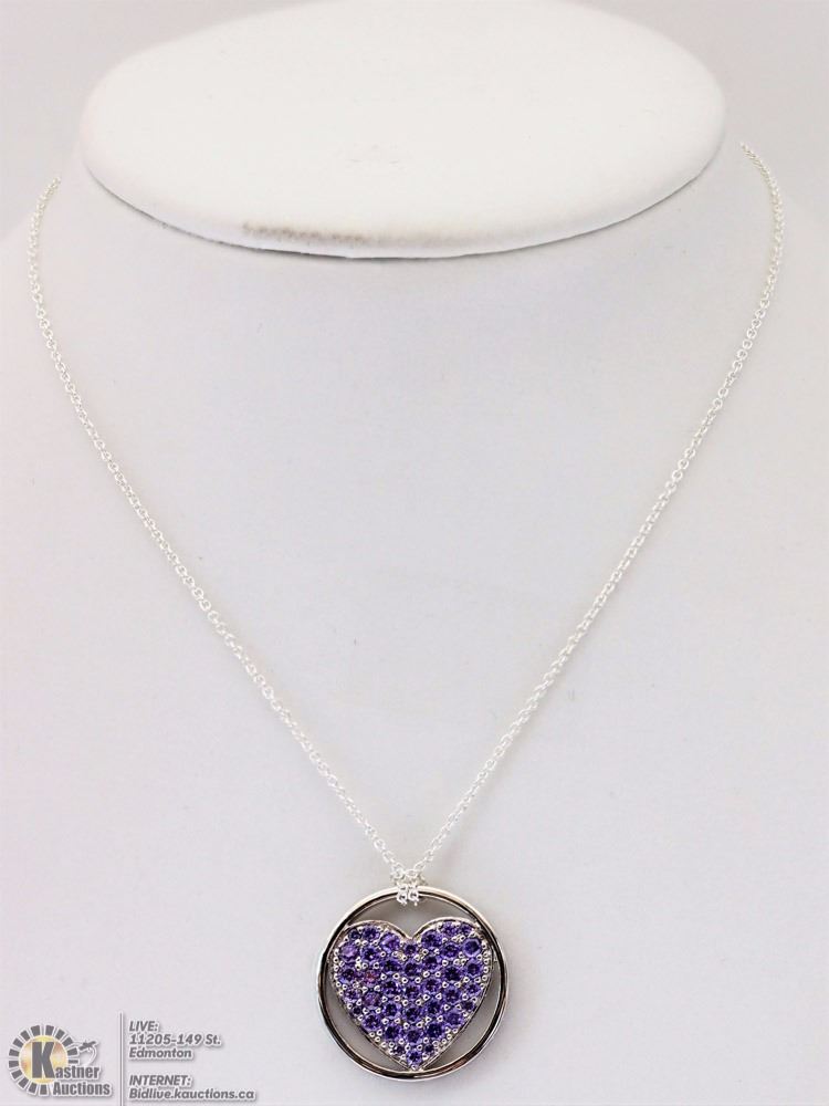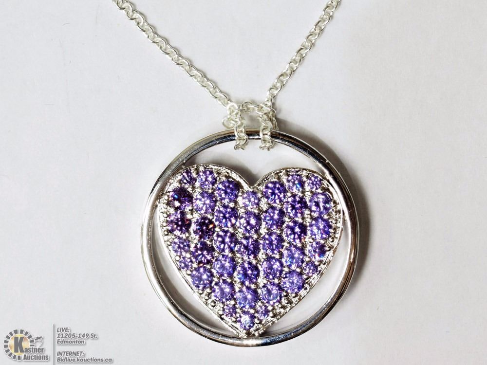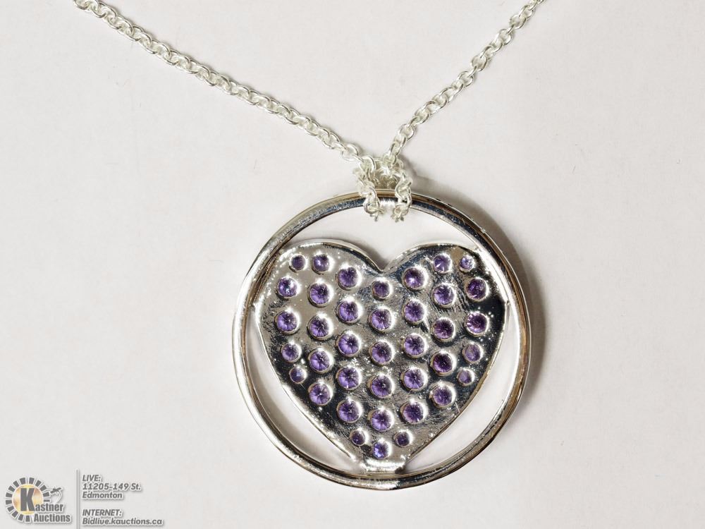(#6- NN3):STERLING SILVER CRYSTAL PURPLE HEART PENDANT WITH CHAIN