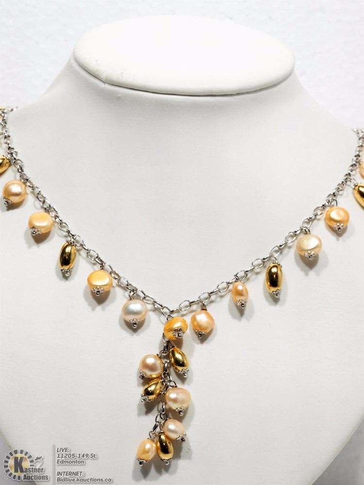 #30 - GS19: STERLING SILVER FRESHWATER PEARL (16" INCH) EUROARGENTI NECKLACE. JEWELLERY.
