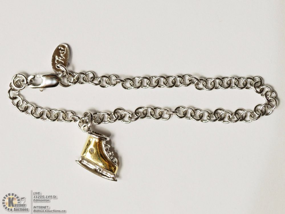 (25 - NN4): STERLING SILVER RHODIUM PLATED DIAMOND BRACELET WITH SKATE SHAPED PENDANT
