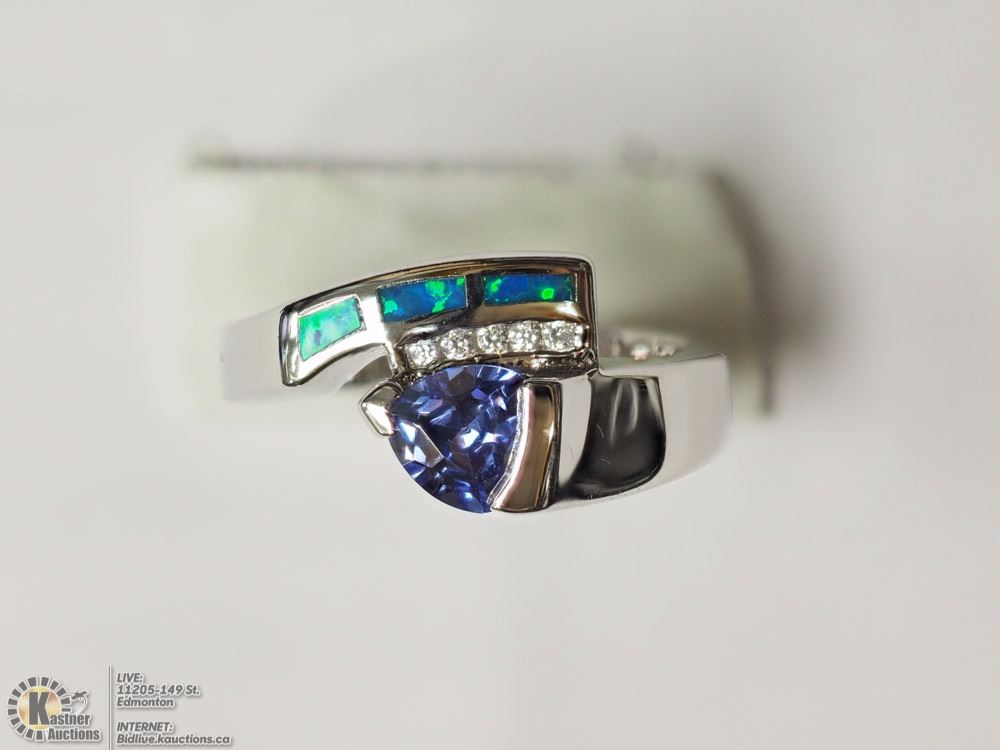 (#12- NN3):STERLING SILVER SIMULATED TANZANITE CREATED OPAL RING