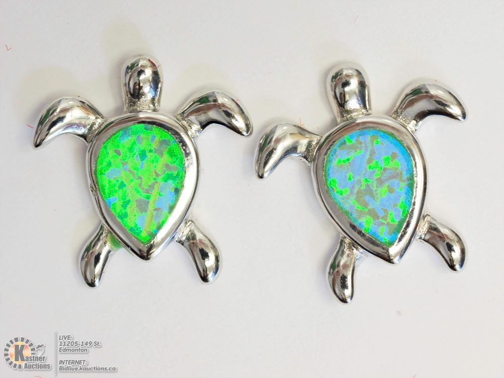 06 - GS14 -STERLING SILVER SYNTHETIC OPAL TURTLE SHAPED EARRINGS