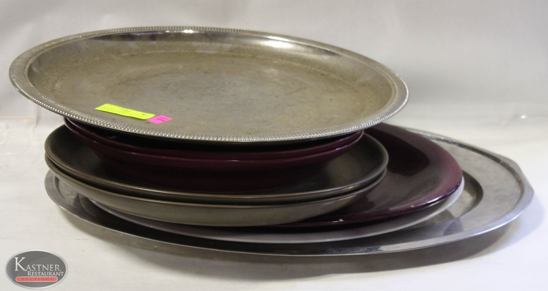 STACK OF 6 COMMERCIAL SERVING PLATTERS & PLATES
