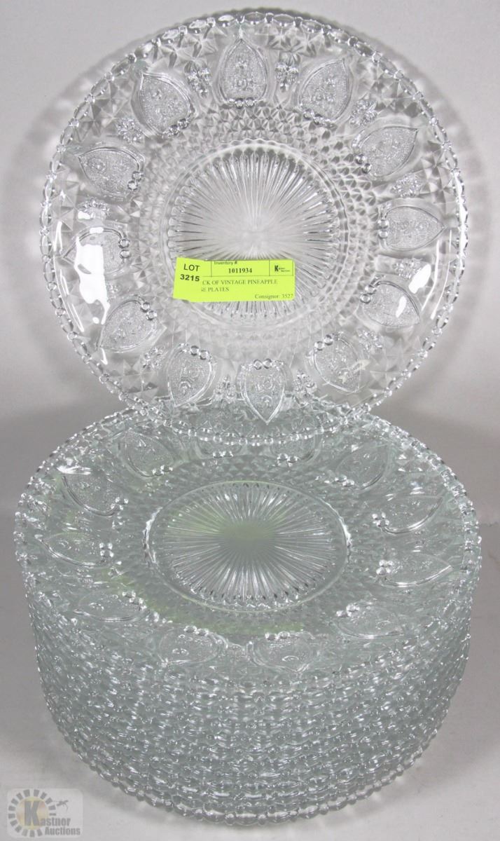 STACK OF VINTAGE PINEAPPLE ROSE PLATES