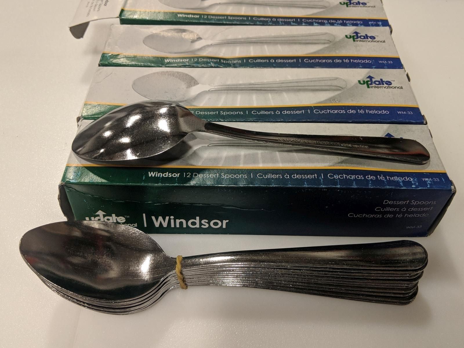 KW546 - NEW STAINLESS DESSERT SPOONS, WINDSOR SERIES - LOT OF 48