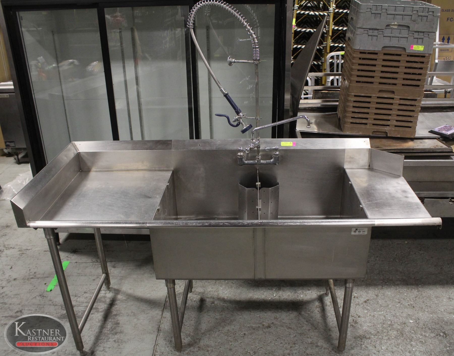 STAINLESS STEEL 2-WELL SINK W/ 2 RUNOFFS, TAPS &