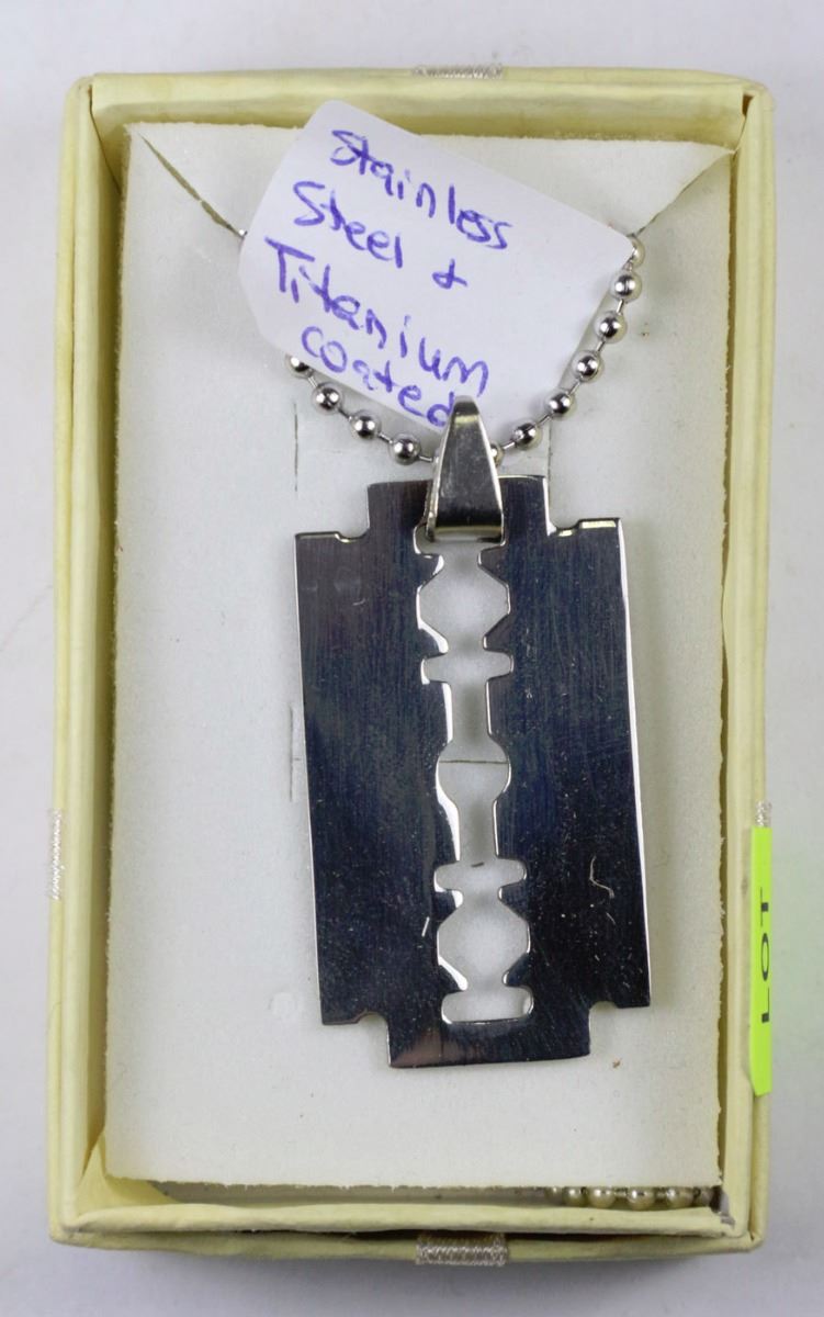 STAINLESS STEEL RAZOR BLADE PENDANT ON CHAIN