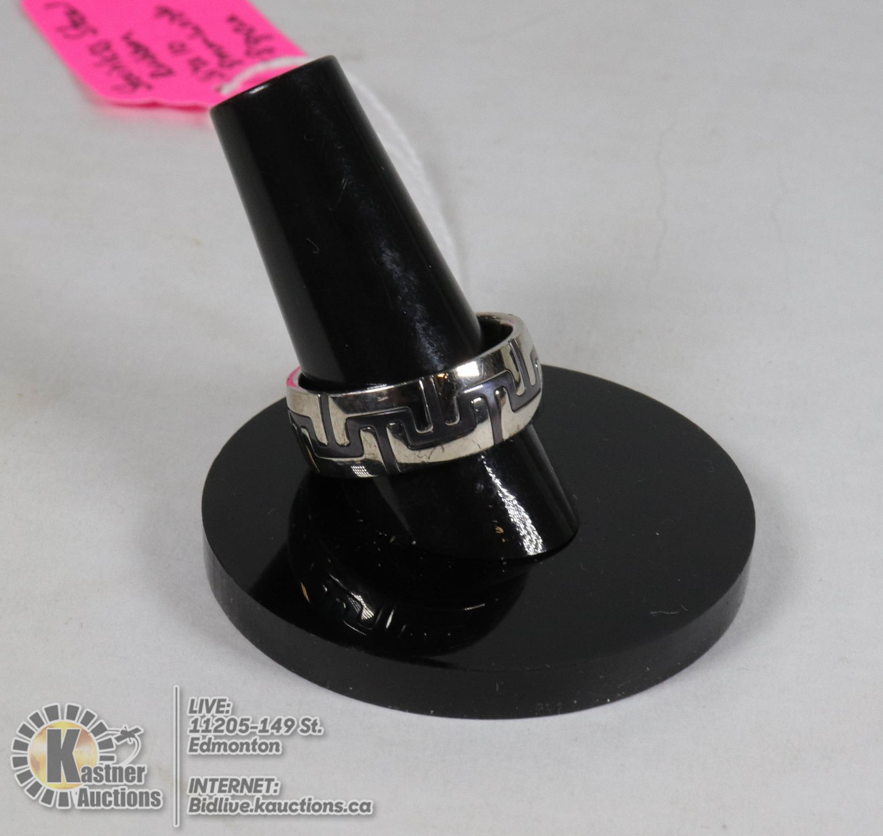 STAINLESS STEEL RING/ BLACK RUBBER,8.8 GRAMS, SIZE 10, 8MM WIDE