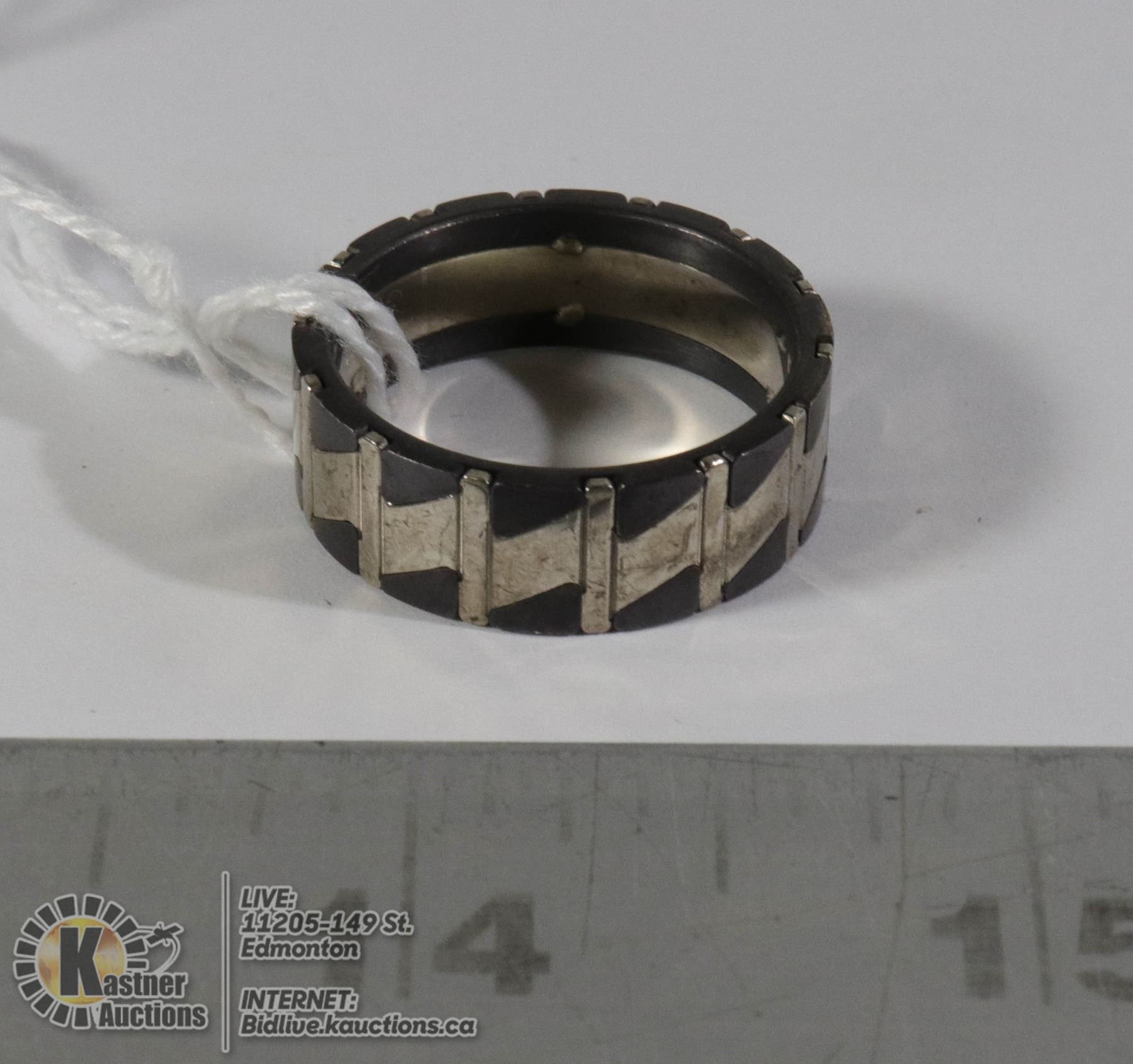 STAINLESS STEEL RING/ BLACK RUBBER,10.0 GRAMS, SIZE 11.5, 8 MM WIDE