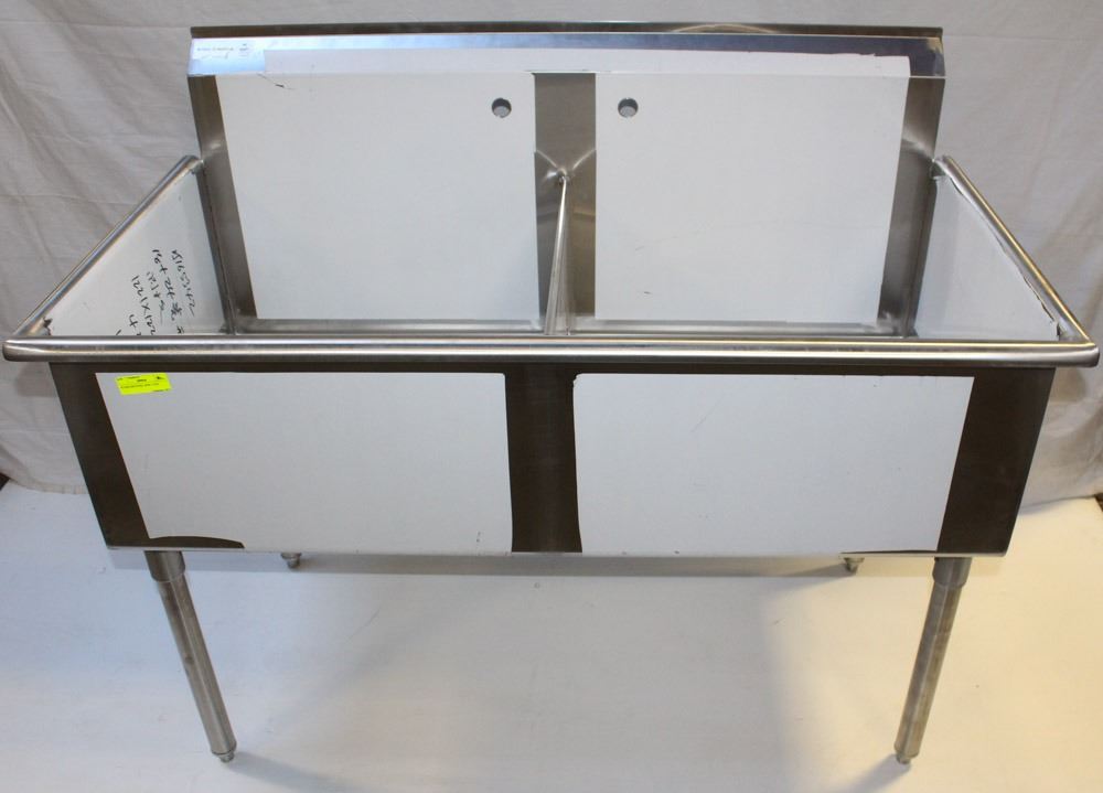 MV8 - NEW 18GA.430S/S BUDGET SINK 27.50"X51"X43.75"H, 2 TUB:24"X24"X13", S/S LEG AND SOCKET, S/S BULLET FOOT 3.5" DRAIN BASKET INCLUDED