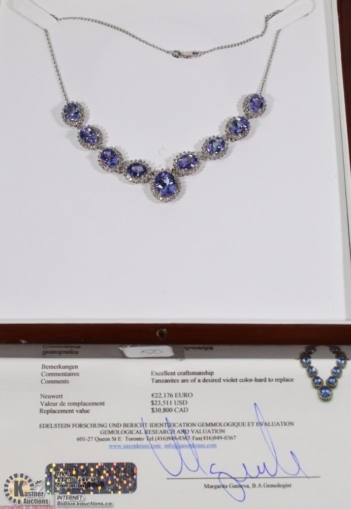 WITH COA 1.6TCW DIAMOND, 18.19 TANZANITE TCW. SUGGESTED REPLACEMENT VALUE $30,800.00