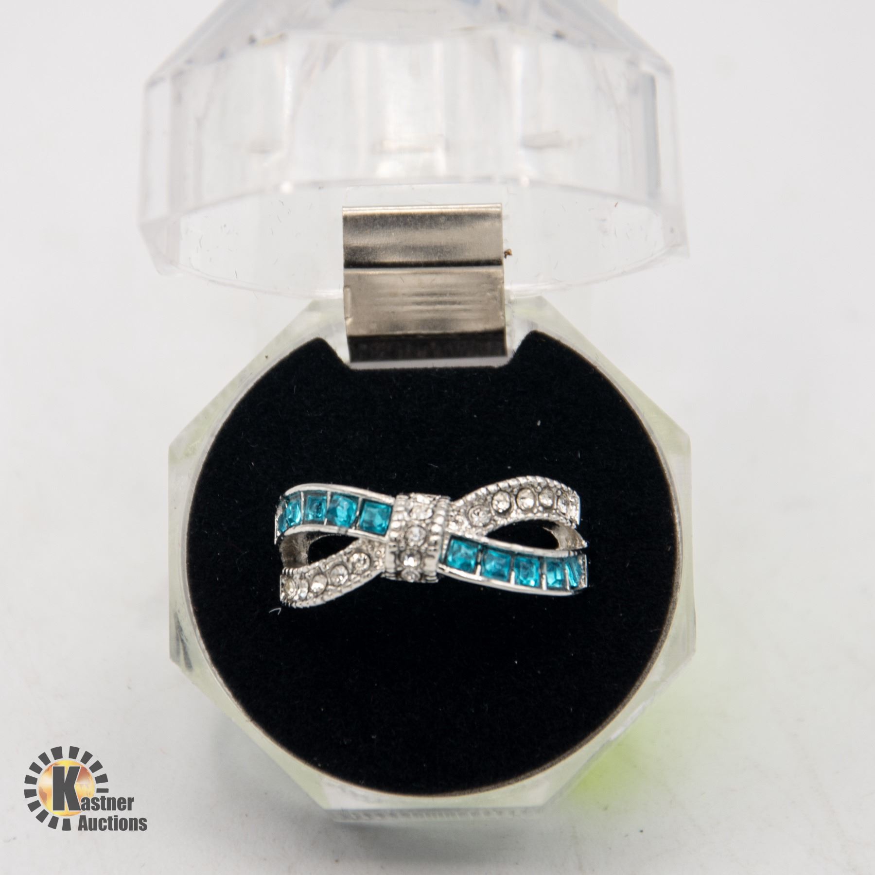 CZ IN RIBBON DESIGN SIZE 8 **ALL ITEMS MUST BE REMOVED BY 5PM SATURDAY, JULY 22ND 2023. ALL REMAINING ITEMS WILL BE SUBJECT TO A $6.00 PER DAY STORAGE CHARGE. ANY ITEMS REMAINING AFTER MONDAY, AUGUST 7TH, 2023 WILL BE CONSIDERED FORFEITED. NO REFUNDS WILL BE ISSUED FOR FORFEITED ITEMS. TO SCHEDULE A PICK UP APPOINTMENT CLICK HERE