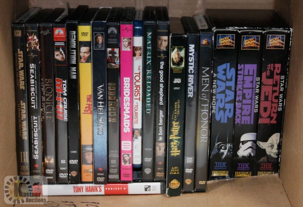 STAR WARS BOX SET AND OTHER ASSORTED DVDS.