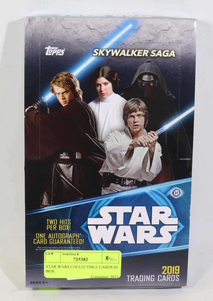 2019 STAR WARS SKYWALKER SAGA COLLECTIBLE CARDS IN BOX, NEW, OPENED COLLECTIBLE***CARDS HAVE BEEN SEARCHED, EXPECT ALL RARES AND HIGH VALUE CARDS TO BE REMOVED