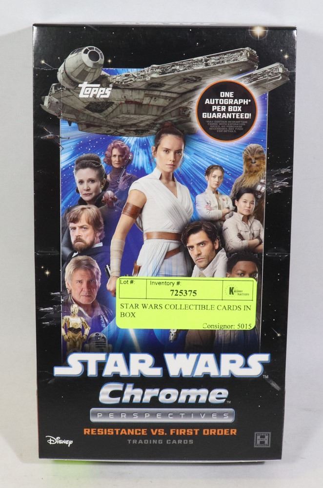 2018 STAR WARS CHROME PERSPECTIVES COLLECTIBLE CARDS IN BOX, NEW, OPENED COLLECTIBLE***CARDS HAVE BEEN SEARCHED, EXPECT ALL RARES AND HIGH VALUE CARDS TO BE REMOVED