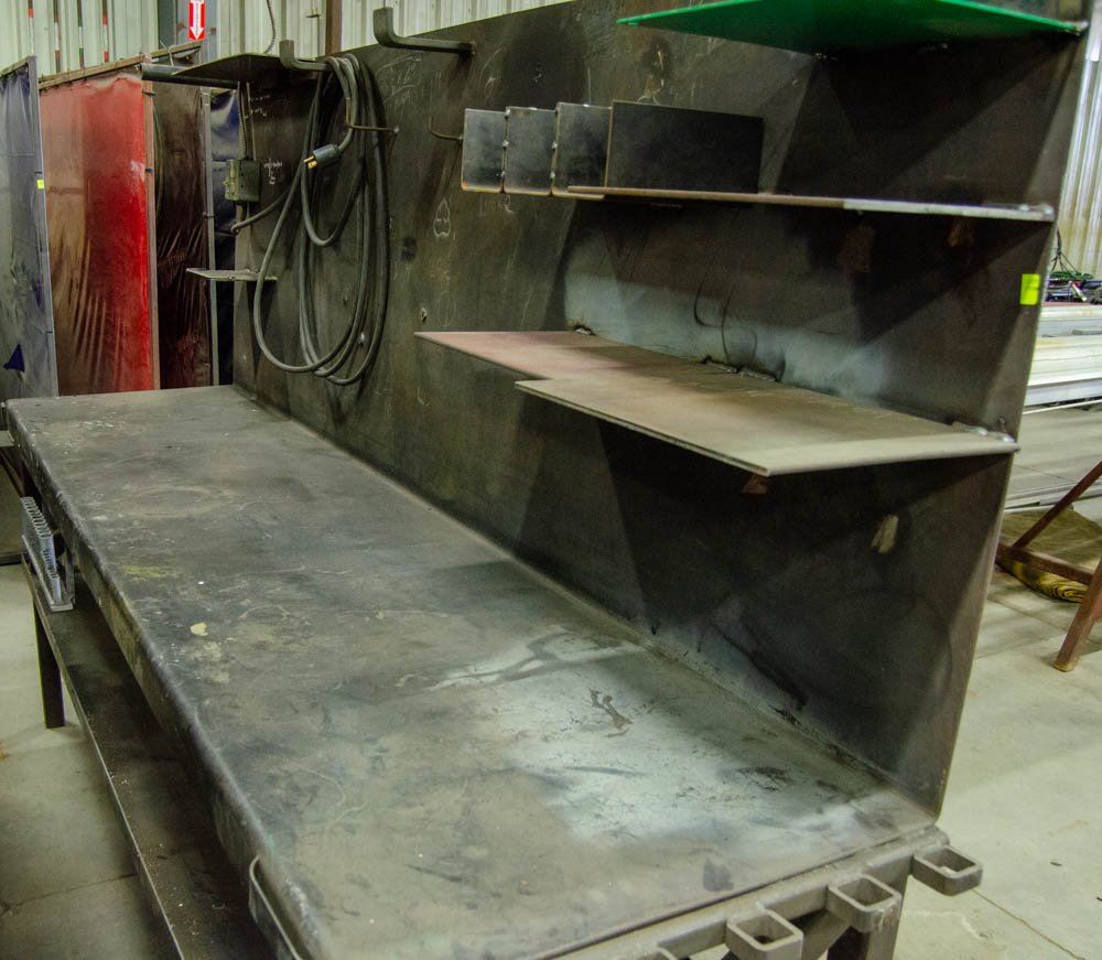 STEEL WORK BENCH W/ UNDER SHELF & OVERHEAD LIGHT. 100" X 24" X 37" (88" TOTAL HEIGHT)