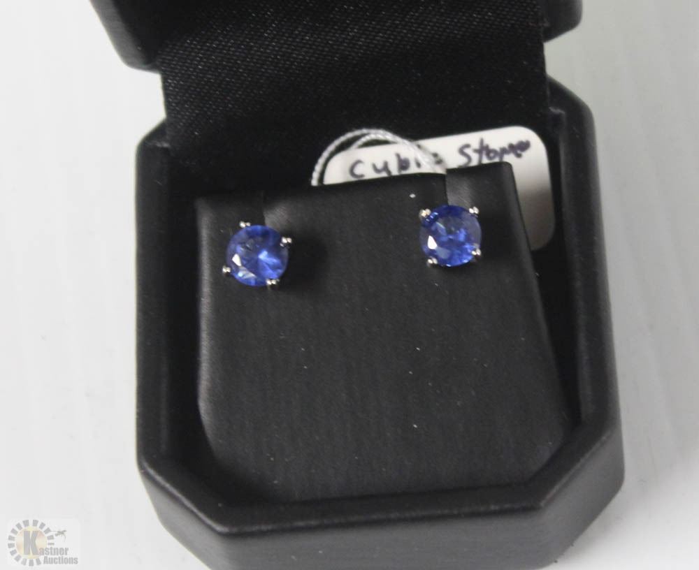 STERLING .925 SILVER BLUE CUBIC STONES EARRINGS