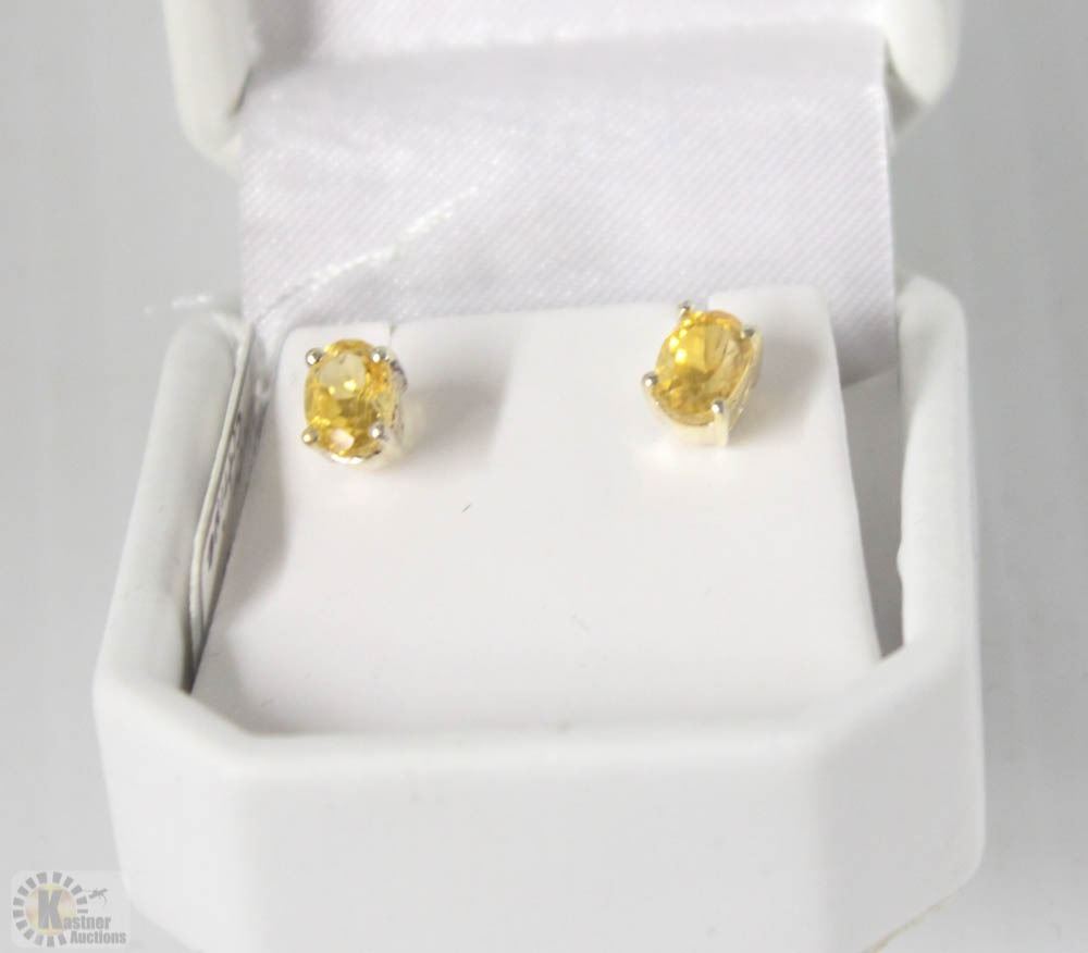 STERLING .925 SILVER EARRINGS YELLOW CITRINE