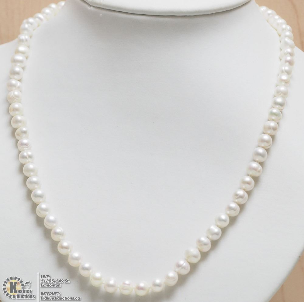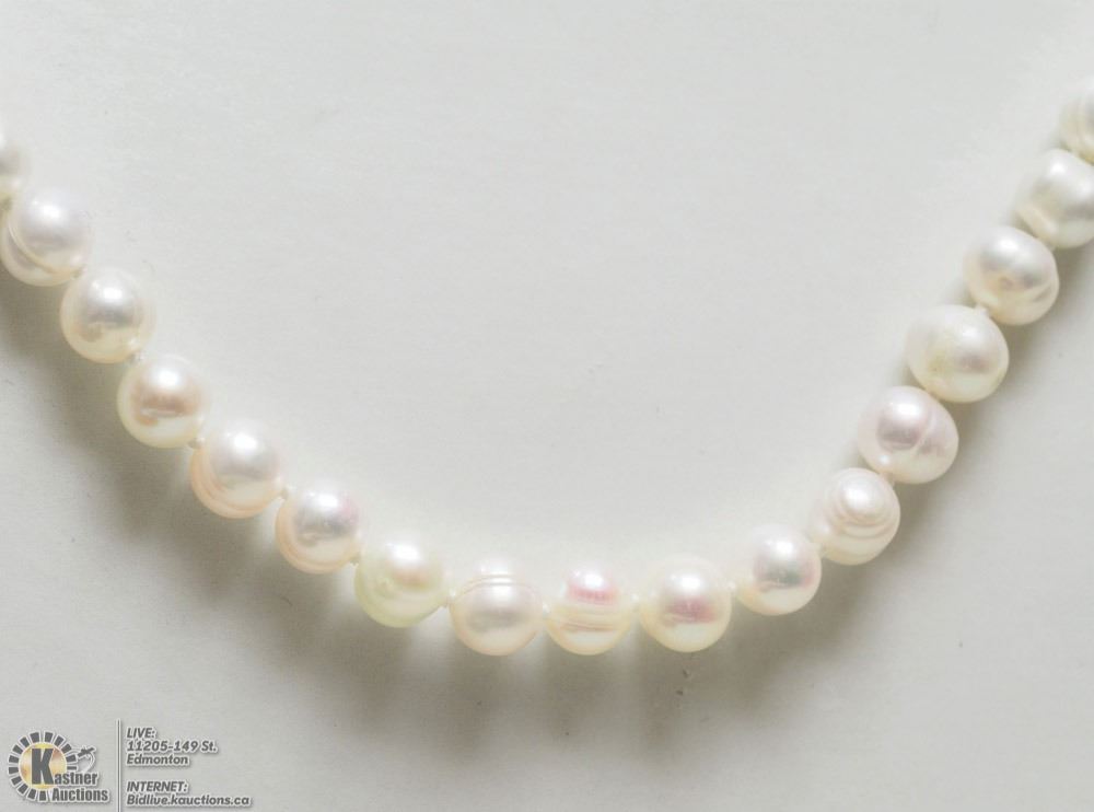 48 - BA10; STERLING FRESHWATER PEARL NECKLACE