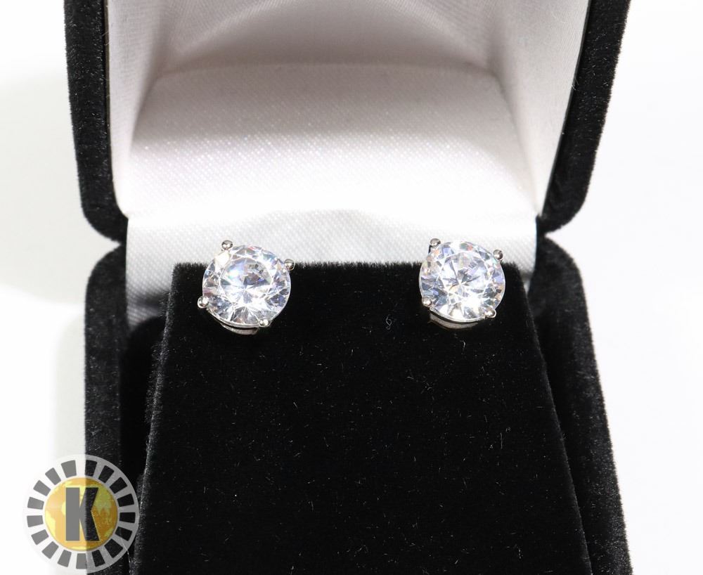 STERLING SILVER 2ct EACH CZ DIAMOND EARRINGS, NEW