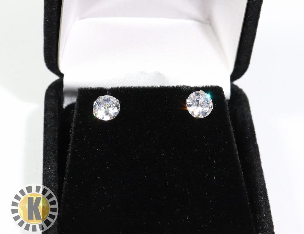 STERLING SILVER .75ct EACH CZ DIAMOND EARRINGS,