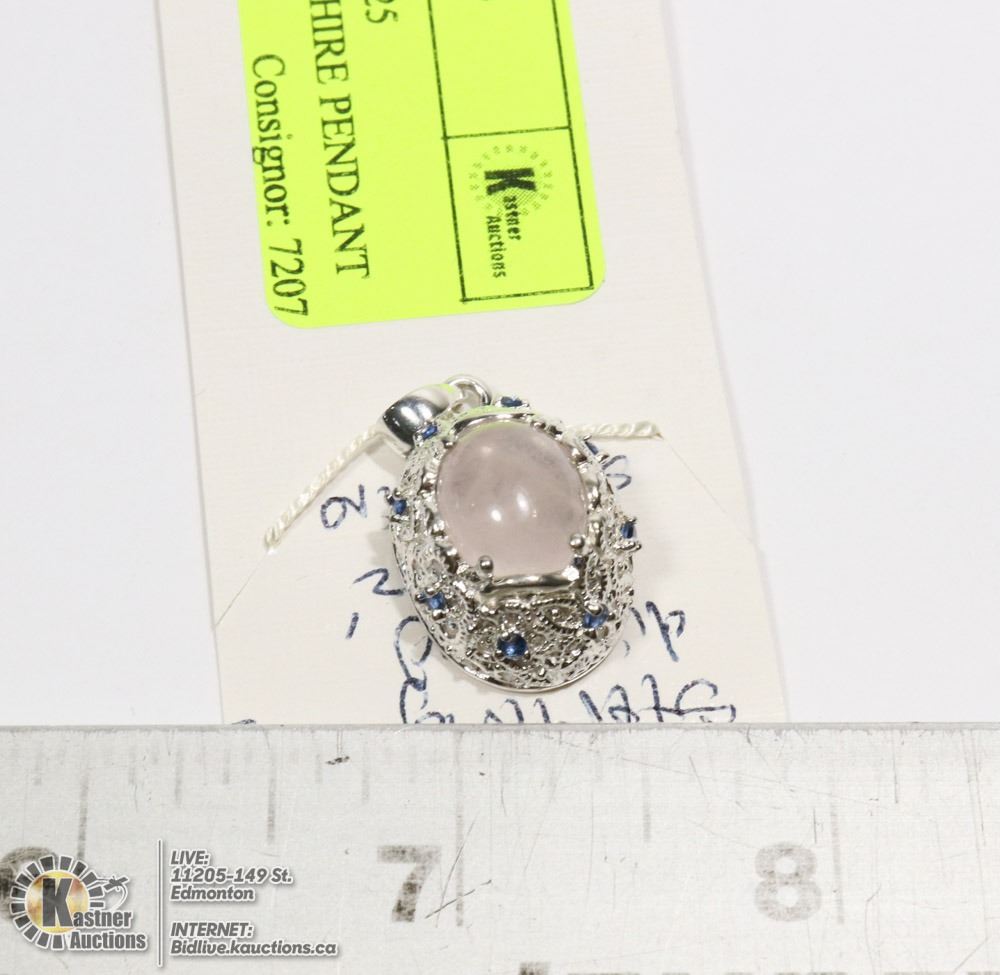 STERLING SILVER .925 DIAM/QUARTZ/SAPPHIRE PENDANT