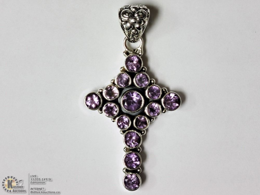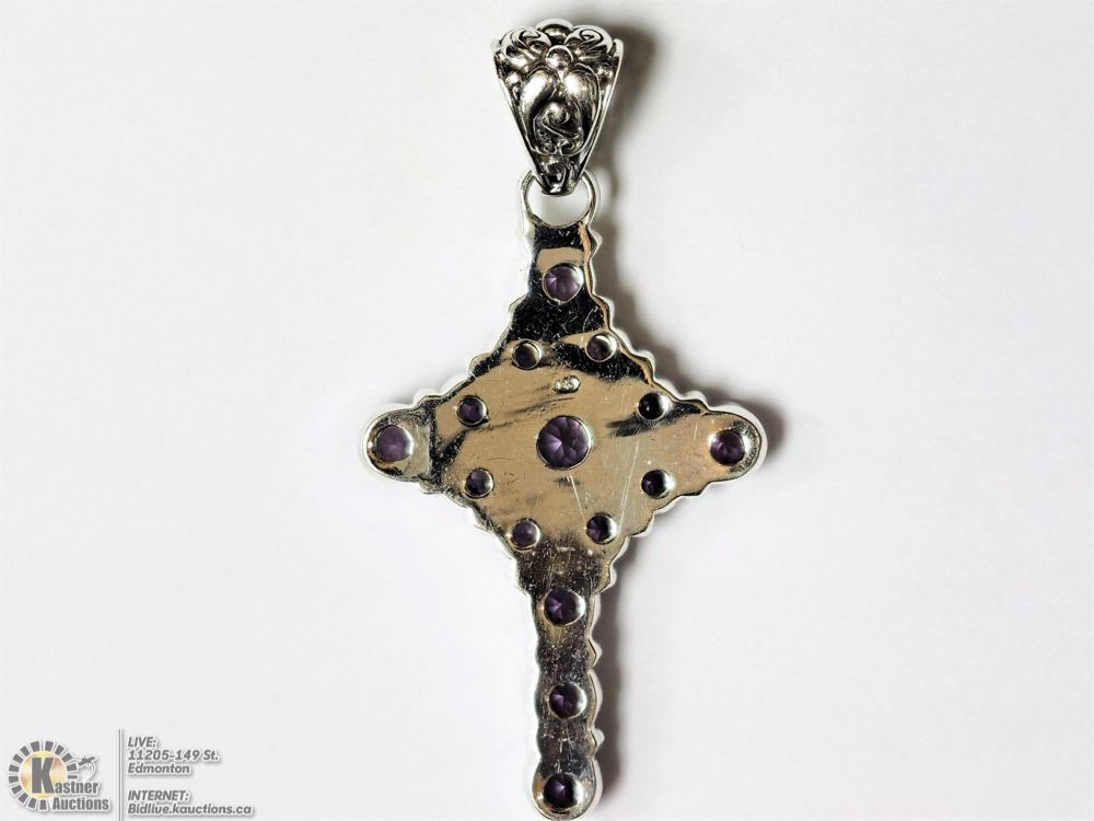 (#24- NN3):STERLING SILVER AMETHYST CROSS PENDANT