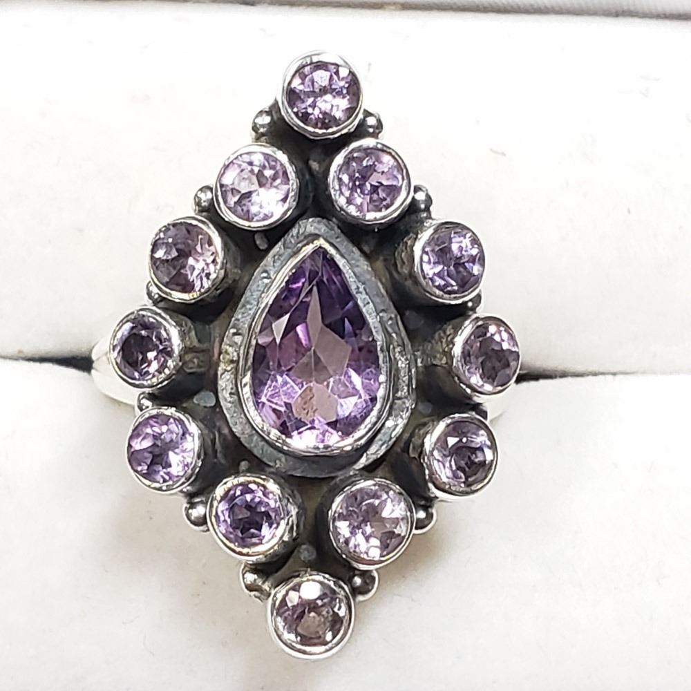 224 - JT37 - STERLING SILVER AMETHYST RING (~WEIGHT 8.5G). JEWELRY