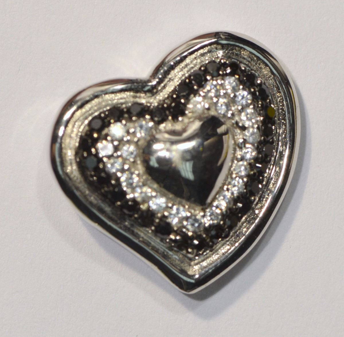 STERLING SILVER BLACK & WHITE CUBIC HEART PENDANT