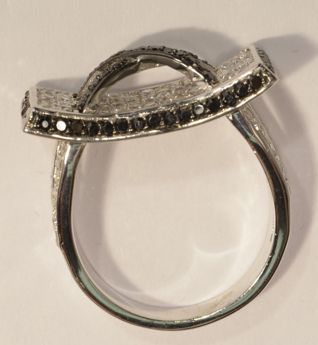 STERLING SILVER BLACK & WHITE CUBIC ZIRCONIA RING
