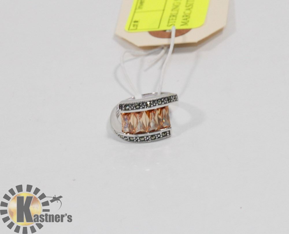 STERLING SILVER CITRINE MARCASITE RING SIZE 6.