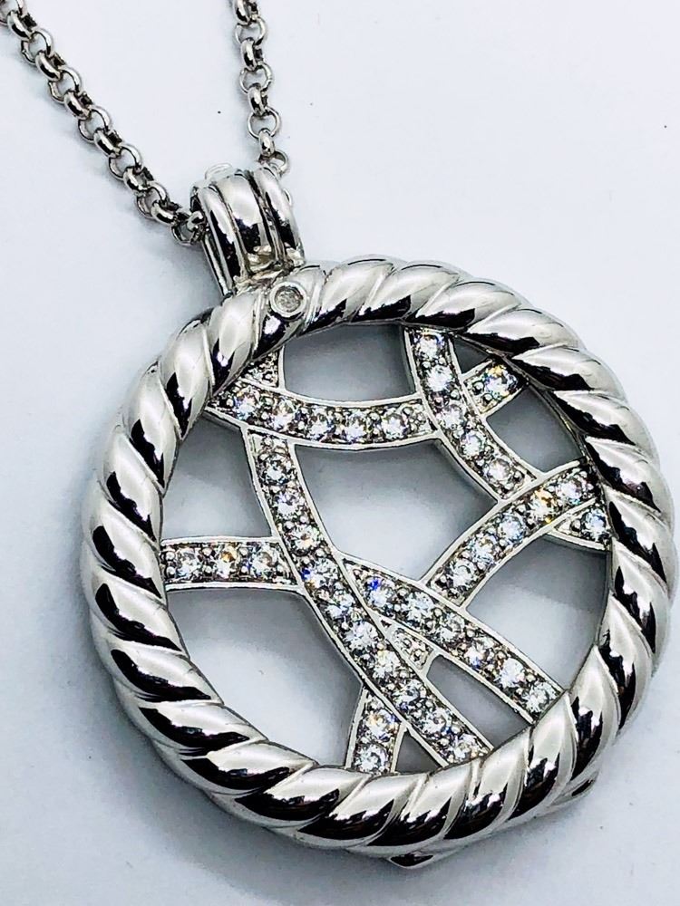 212 - JT37 - STERLING SILVER CUBIC ZIRCONIA NECKLACE (~WEIGHT 31G). JEWELRY