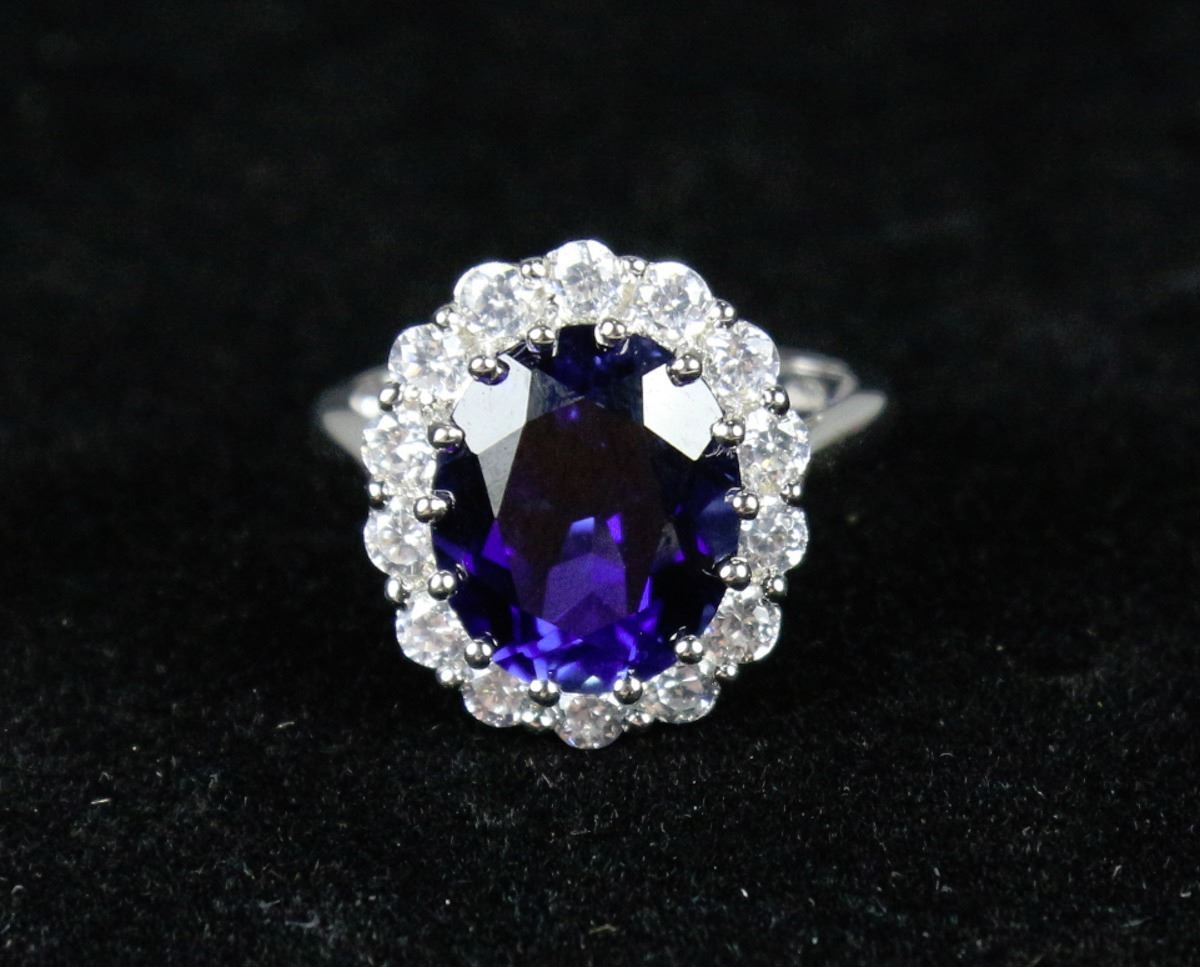 STERLING SILVER CZ & CREATED OPAL SAPPHIRE RING