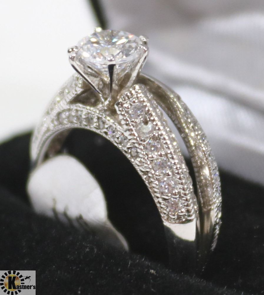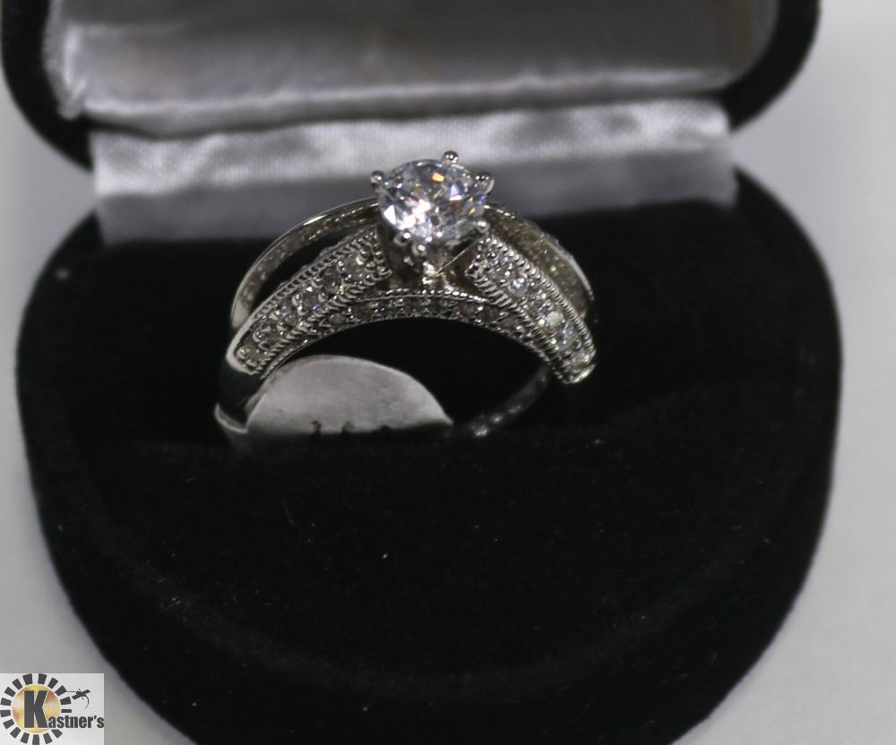 STERLING SILVER CZ ENGAGEMENT SET, SIZE 8