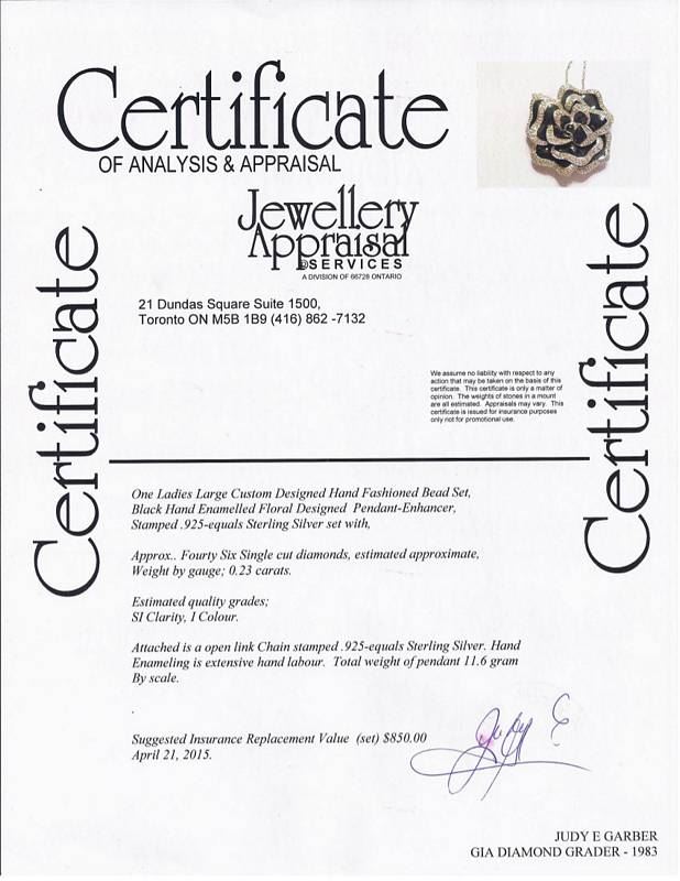 W/ APPRAISAL, SUGGESTED REPLACEMENT VALUE $850.00