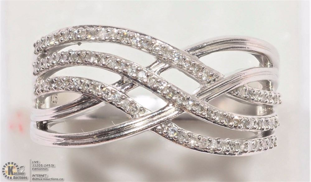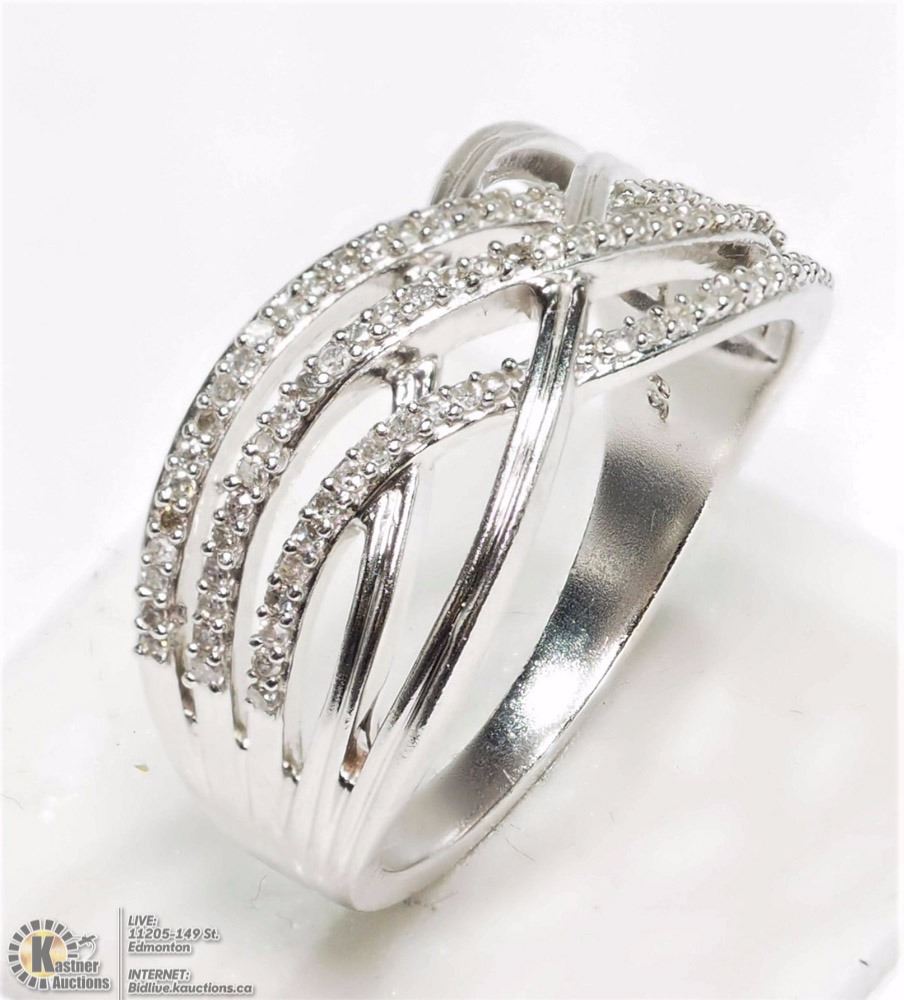 6-NT17: STERLING SILVER DIAMOND (0.40CT) WAVE RING. W/ COA - SIZE 7. SUGGESTED REPLACEMENT VALUE $899.00