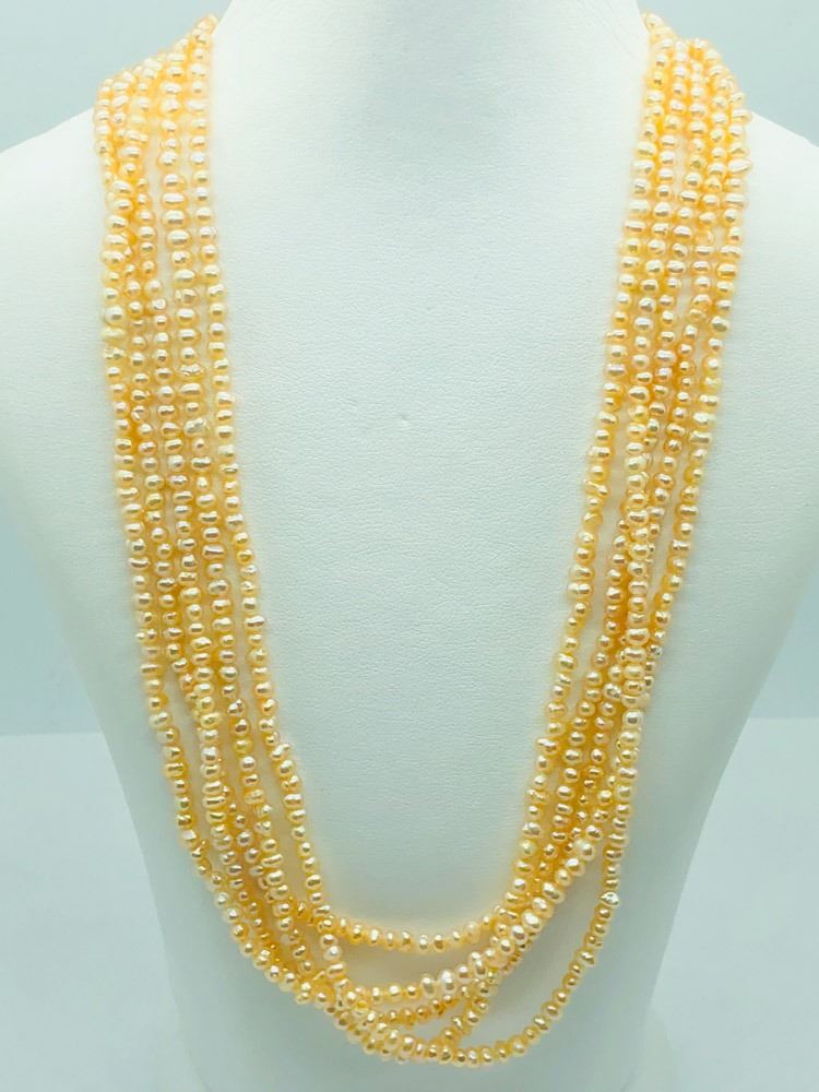 49 - MM 133 - STERLING SILVER FRESHWATER PEARL TRIPLE STRAND NECKLACE. JEWELLERY