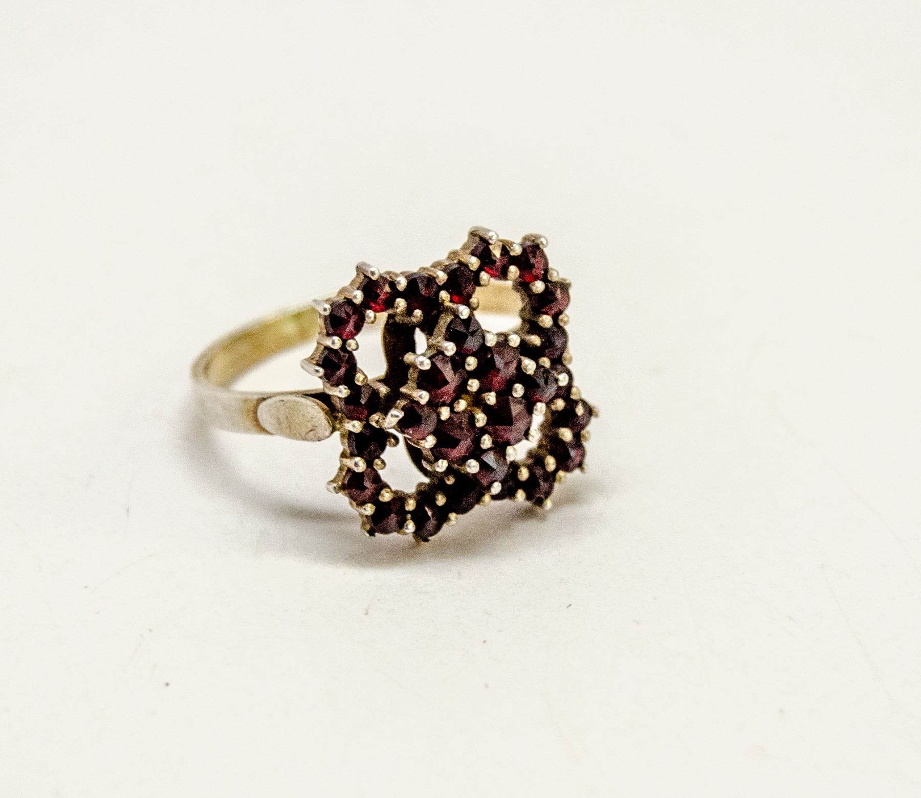STERLING SILVER GARNET CLUSTER RING SIZE 8.5