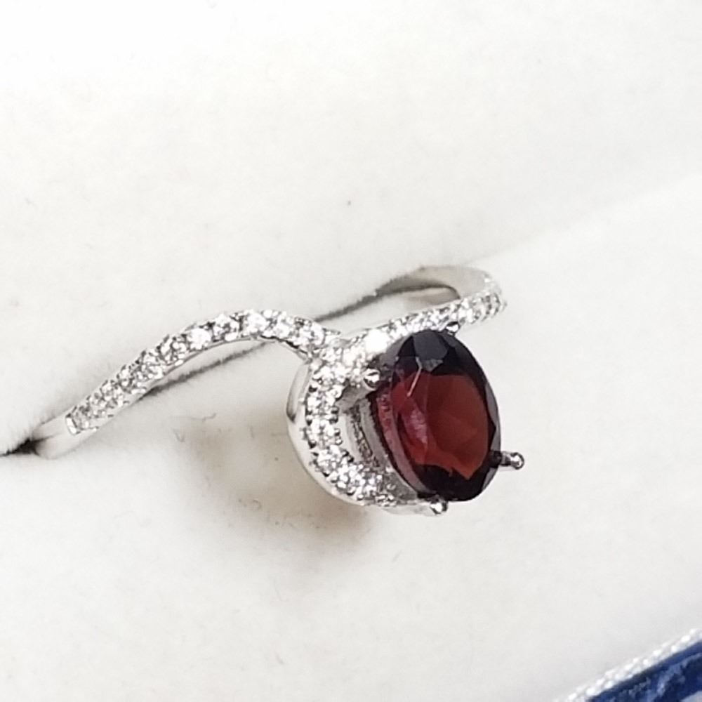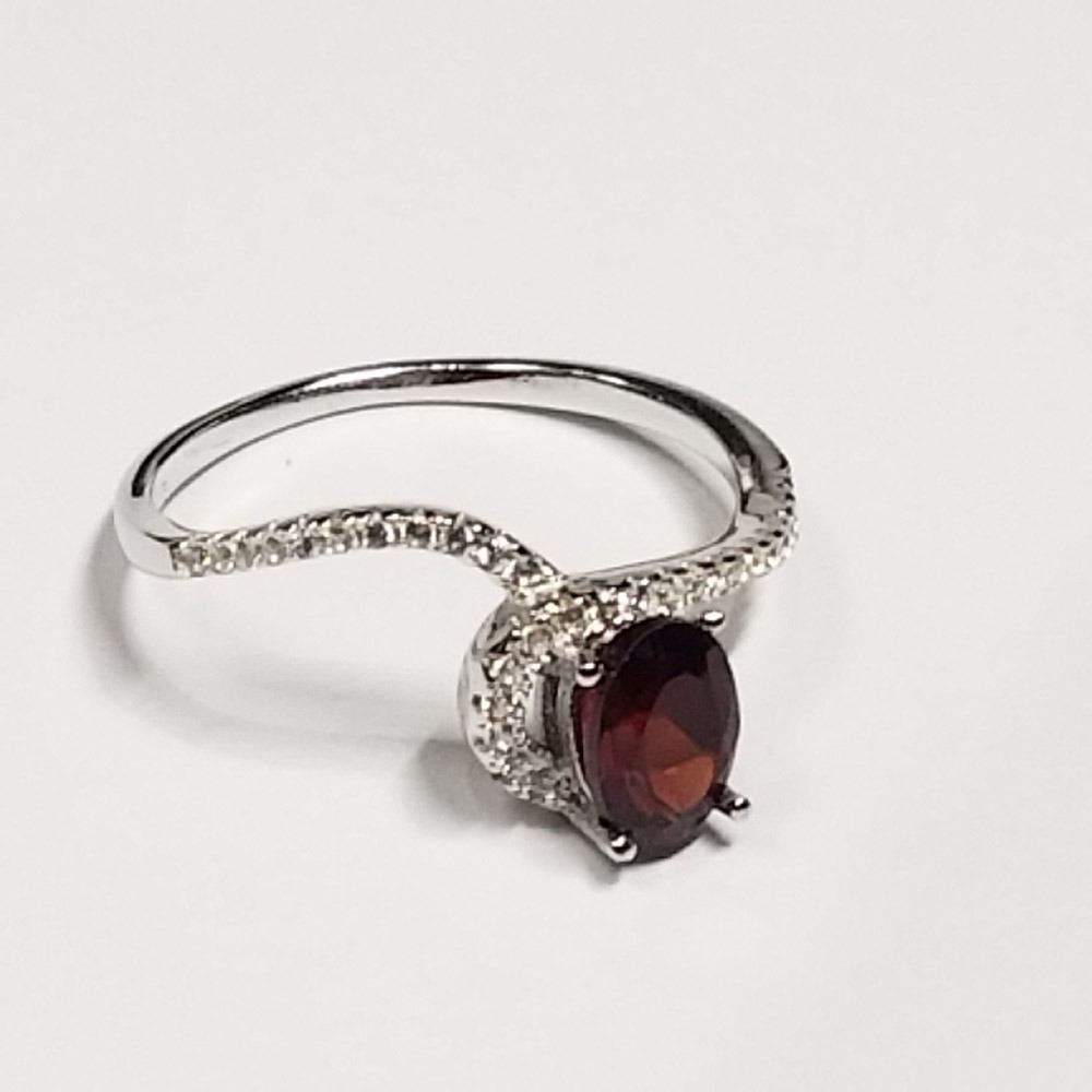 292 - JT38 - STERLING SILVER GARNET CUBIC ZIRCONIA RING. JEWELRY