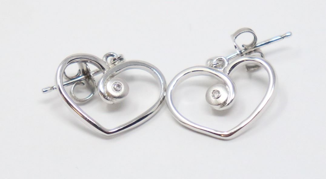 STERLING SILVER HEART-SHAPED EARRINGS, CARING