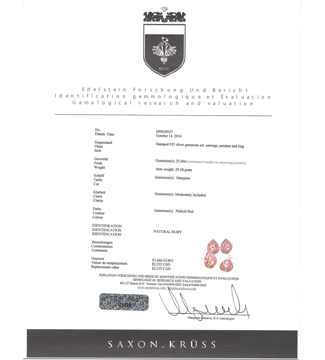 & EARRINGS SET - SUGGESTED REPLACEMENT VALUE $2,525.00