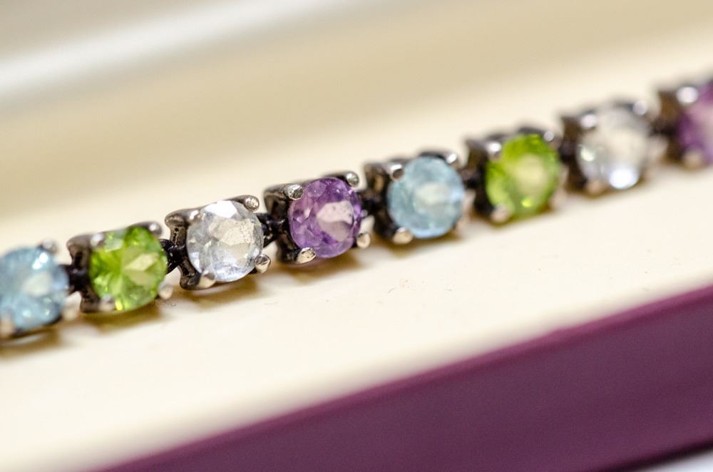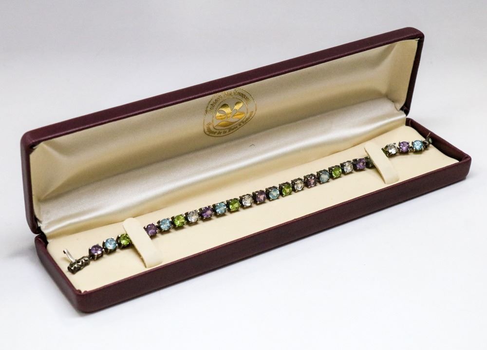 STERLING SILVER SEMI PRECIOUS STONE BRACELET 7.5”