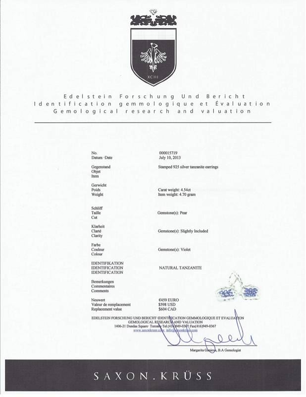 W/ APPRAISAL, SUGGESTED REPLACEMENT VALUE $604.00