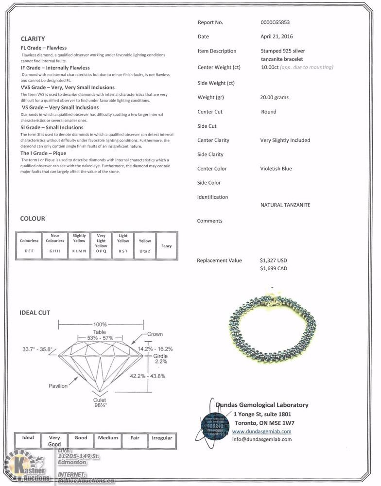 1 - BA10; STERLING SILVER TANZANITE(10.00CT) TENNIS BRACELET W/ COA - SUGGESTED REPLACEMENT VALUE $1,699.00