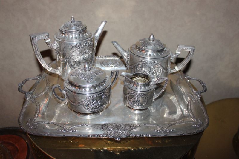HALLMARK PRIOR TO 1950, TRAY, COFFEE & TEAPOT, CREAM & SUGAR.